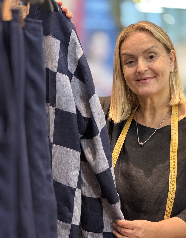 Depois de 10 anos comecei fazer algumas peças sob medida e fazer algumas peças para vender, e então paramos de fazer os consertos. Foi aí que criamos a Claire Juliani e depois de mais alguns anos, conseguimos o nosso negócio próprio, porque era o desejo inicial do meu coração, lá de 30 anos atrás, mas que não foi possível começar assim, por uma questão financeira e preparação profissional. Hoje a nossa marca, é uma marca de alta alfaiataria de linho puro.