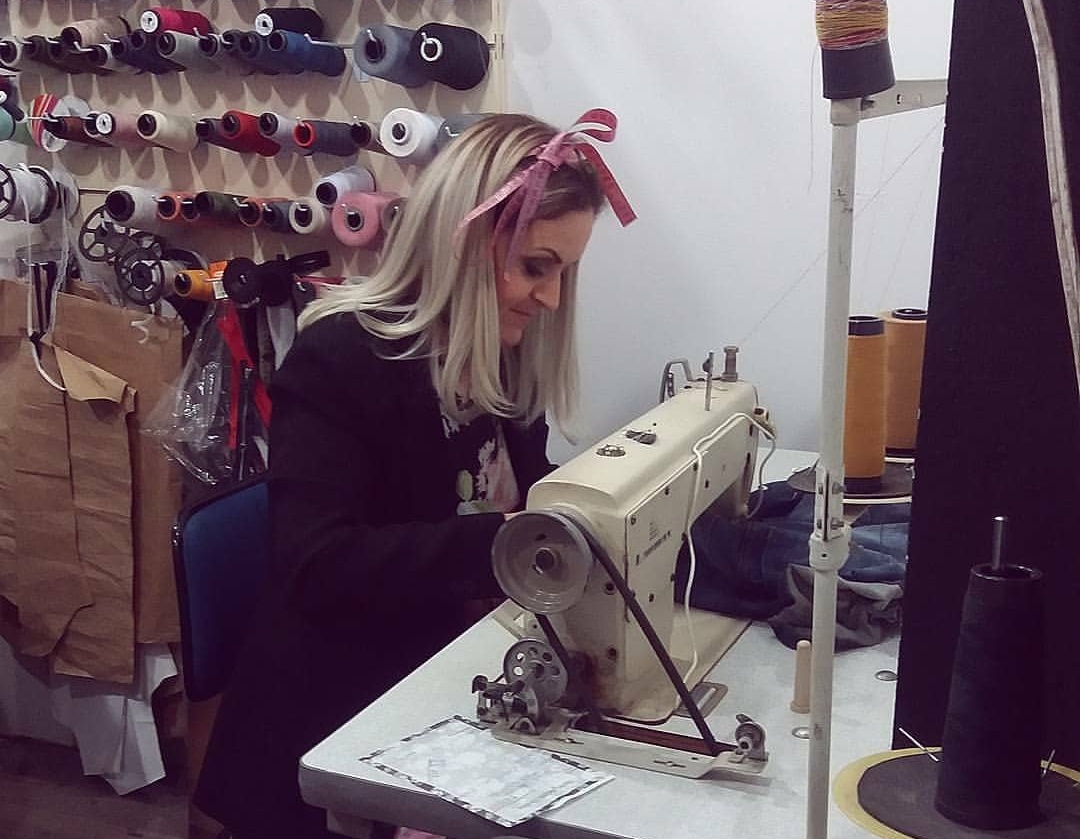 Então eu voltei muito triste para Joinville, decepcionada por não ter conseguido, mas decidi cavar minha profissão na unha e comecei sem dinheiro, sem formação, mas com muito desejo, com muito sonho, comecei no conserto de peças de roupas. Fiquei 10 anos fazendo conserto de roupas no ateliê da Juli.