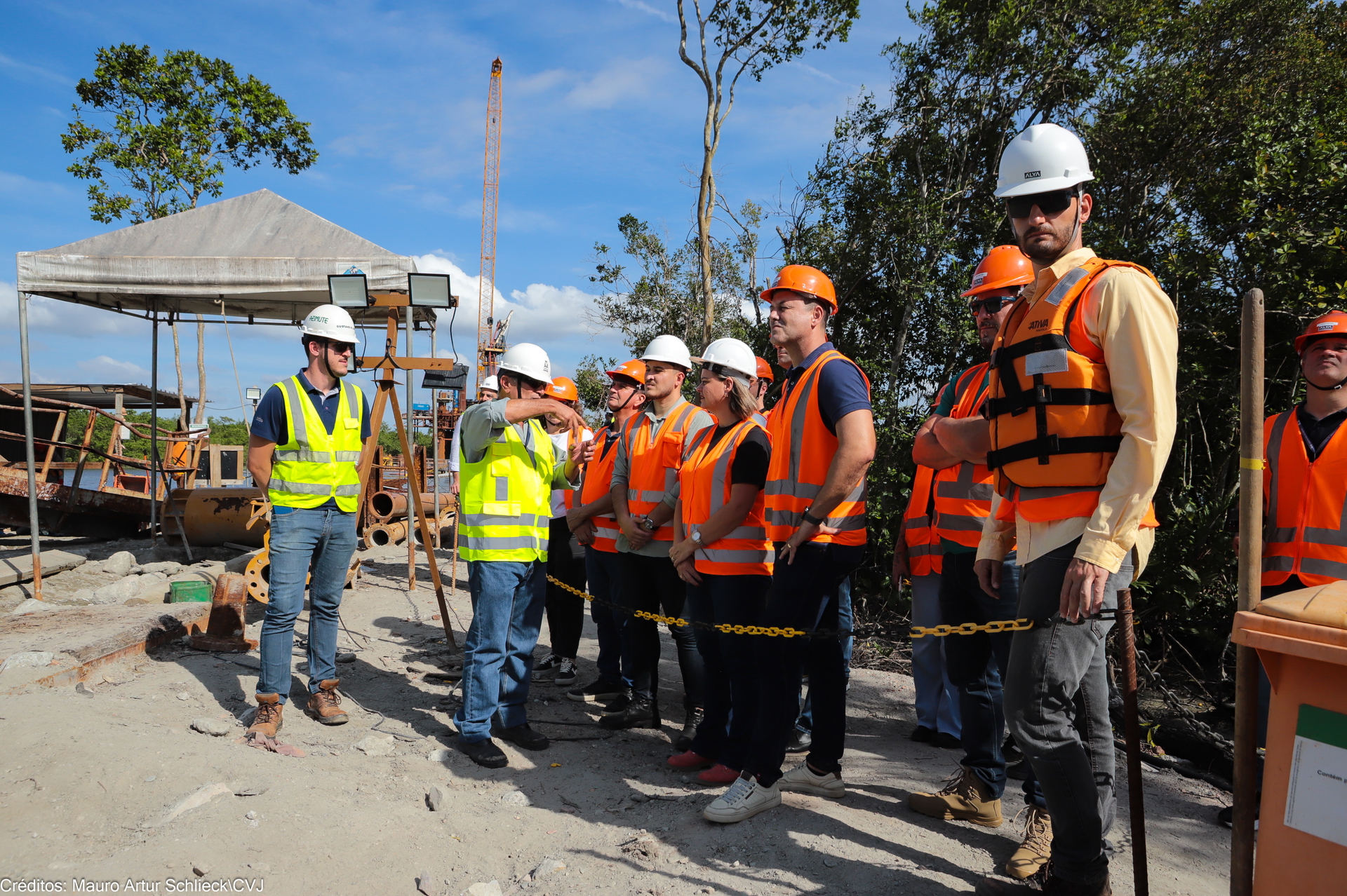 Antes da vistoria, os parlamentares acompanharam uma apresentação da Secretaria de Infraestrutura (Seinfra). Segundo o diretor-executivo da pasta, Paulo Castro, cerca de 400 trabalhadores atuam atualmente na obra, que atingiu 50% de execução física e 45% de avanço financeiro.