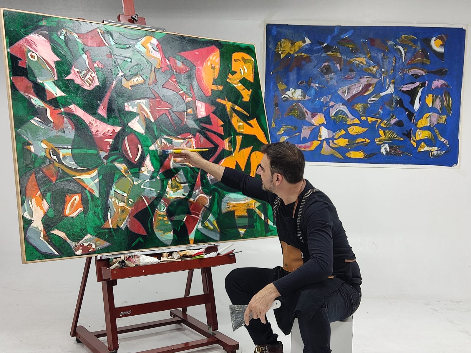 A pintura recente ocupa um lugar central na exposição. Desenvolvida em atelier, essa produção apresenta um aprofundamento da pesquisa do artista, em que cor, matéria e gesto assumem protagonismo. O tempo se torna visível e a imagem passa a existir como construção, tensionando os limites entre as linguagens que estruturam sua trajetória.